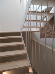 Éste es un buen ejemplo, lo rescatamos de nuestra cartera de proyectos realizados con éxito. Se trata de una reforma y ampliación de vivienda unifamiliar ubicada en Terrassa. La dificultad principal a la que tuvimos que hacer frente es que la casa estaba realmente en muy mal estado: “Pudimos rescatar algunas partes muy singulares y especiales de la antigua edificación, una de ellas el tramo inferior de la escalera”, afirma Miquel Bosch, arquitecto y uno de los responsables del proyecto.